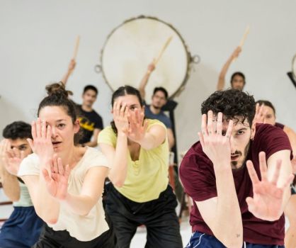 Il programma prende il via il 29 aprile in coincidenza con la Giornata internazionale della danza promossa dall’Unesco. Nella suggestiva cornice di Piazza Dante , alle 21.00, davanti l’imponente chiesa di S. Nicolò l’Arena, è offerto alla città un evento d’eccezione: la Compagnia Zappalà Danza presenta Aspettando il Fuji , performance site-specific che anticipa la nuova creazione di Roberto Zappalà Brother to Brother: dall’Etna al Fuji , in prima assoluta al Teatro Comunale di Modena il prossimo ottobre. Il progetto è patrocinato dall’INGV – Istituto Nazionale di Geofisica e Vulcanologia. Sul palco, otto danzatori e i Munedaiko , musicisti consacrati alla pratica del tamburo tradizionale giapponese Taiko, daranno vita a uno spettacolo coinvolgente che unisce danza e musica in un'esperienza visiva e sonora unica. L'evento è realizzato in collaborazione con l'Associazione Musicale Etnea.