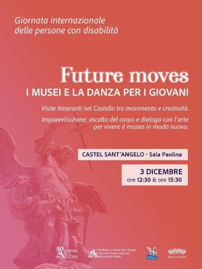In occasione della Giornata Internazionale delle Persone con Disabilità, l’Istituto Pantheon e Castel Sant’Angelo – Direzione Musei nazionali della città di Roma, diretto ad interim da Luca Mercuri, propone un’inedita occasione per attraversare lo spazio della Sala Paolina di Castel Sant’Angelo con il progetto Future Moves. I Musei e la Danza per i giovani, a cura di e20danza, il 3 dicembre alle ore 12:30 e alle 15:30. L’evento è curato da Anna Selvi.