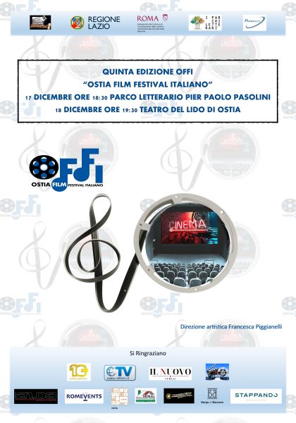 Al via la Quinta Edizione di OFFI , Ostia film festival italiano , una rassegna che omaggia diverse forme d'arte del nuovo cinema italiano e di genere con tematiche diverse. Cinema, musica, cultura e un omaggio ai grandi del cinema. La Direzione artistica è affidata a Francesca Piggianelli , Presidente dell'associazione culturale Romarteventi .OFFI è Patrocinato dalla Regione Lazio , dall’ Assessorato alla Cultura e al Coordinamento delle iniziative riconducibili alla giornata della Memoria e da Panalight . 17 e 18 dicembre, Parco Letterario Pier Paolo Pasolini e Teatro del Lido di Ostia.