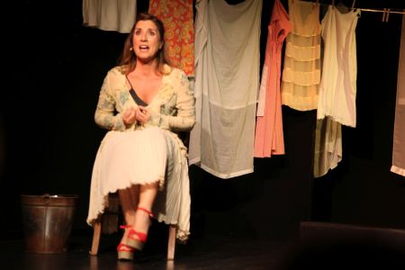 Campagnola, sola sulla scena riesce a rendere vivi e presenti i personaggi che ruotano intorno alla storia: la madre severa che non ha mai conosciuto l'amore come racconta la poesia di Lavinia Antonietti, che è poi la nonna di Campagnola. Il bel Nino , il serioso Teodoro, Cecilia la pettegola, la zingara che " sostiene" Flora con i suoi misteriosi messaggi.....