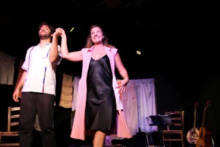 Accanto a lei il musicista Flavio Cangialosi che ,tra mille strumenti, interpreta le musiche firmate da Stefano Fresi con serenate e delicati accompagnamenti.