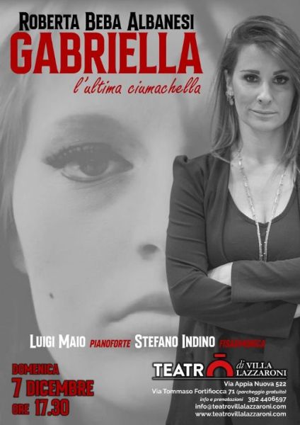 Domenica 7 dicembre , alle 17.30 , al Teatro di Villa Lazzaroni , Roma, appuntamento con lo spettacolo "GABRIELLA, l’ultima ciumachella" di e con Roberta Beba Albanesi e con Luigi Maio al pianoforte e Stefano Indino alla fisarmonica.