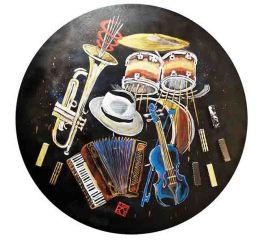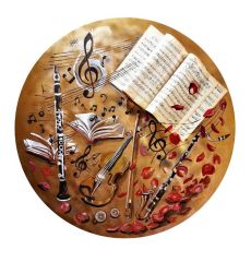 Presente ancora una volta l’artista Roberta Gulotta, pittrice e scultrice, con tre splendide opere : “Vita et Musica” (Tempera acrilica su tela rotonda dorata e inserti in rilievo, dimensioni , Ø 100), “Clarinets and Bubbles” (Tempera acrilica su tela rettangolare dimensioni cm 120 x 80) e "In musica poetica", nella foto in alto, (Tempera acrilica su tela rotonda dorata e inserti in rilievo, dimensioni , Ø 100).