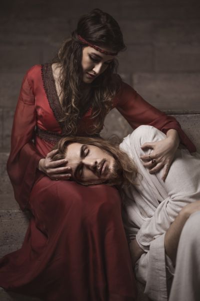 Gli uomini di potere, timorosi di perderne una parte, disorientati e impauriti , e che sanno solo scegliere la morte del loro " competitor". E Gesù Cristo, vicino agli ultimi , al popolo che spera in una nuova vita, ai suoi apostoli. Gesù conosce il suo destino voluto dal Padre ma mostra anche la sua sofferenza umana.