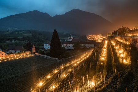 Ancora luce simbolo di vita per i pregiati vigneti dell'Abbazia di Novacella, nei pressi di Bressanone : in conferenza brindisi con il vino Insolitus ... Quando in primavera le notti sono ancora gelide, e le viti stanno per germogliare, a loro difesa vengono utilizzate speciali candele antigelo che, grazie al calore generato, proteggono le colture dal freddo salvando la produzione. E la visione di tutto questo si rivela molto suggestiva.